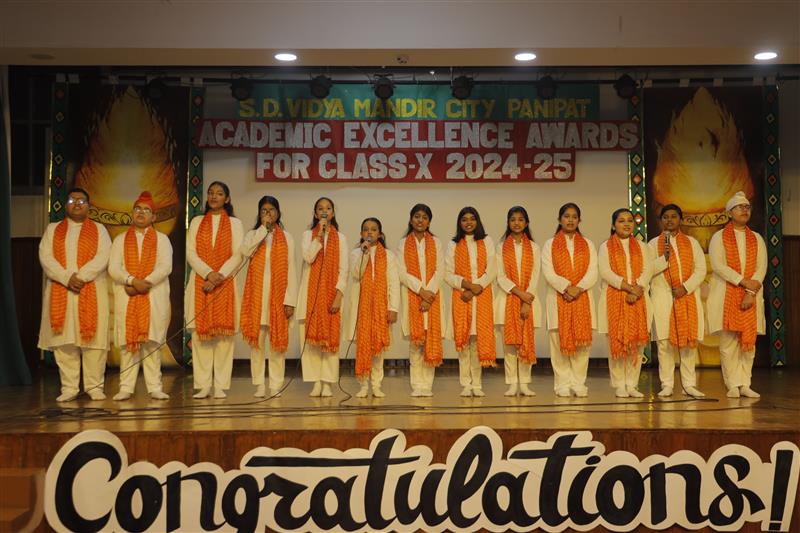 A dignified, well-organized, and inspiring Meritorious Students Felicitation Ceremony was held at S.D. Vidya Mandir City School, Panipat, to honour the outstanding academic achievers of Class X for the academic session 2024–25. The ceremony celebrated students’ hard work, discipline, perseverance, and remarkable academic performance. The school campus was filled with an atmosphere of pride, enthusiasm, and joy.